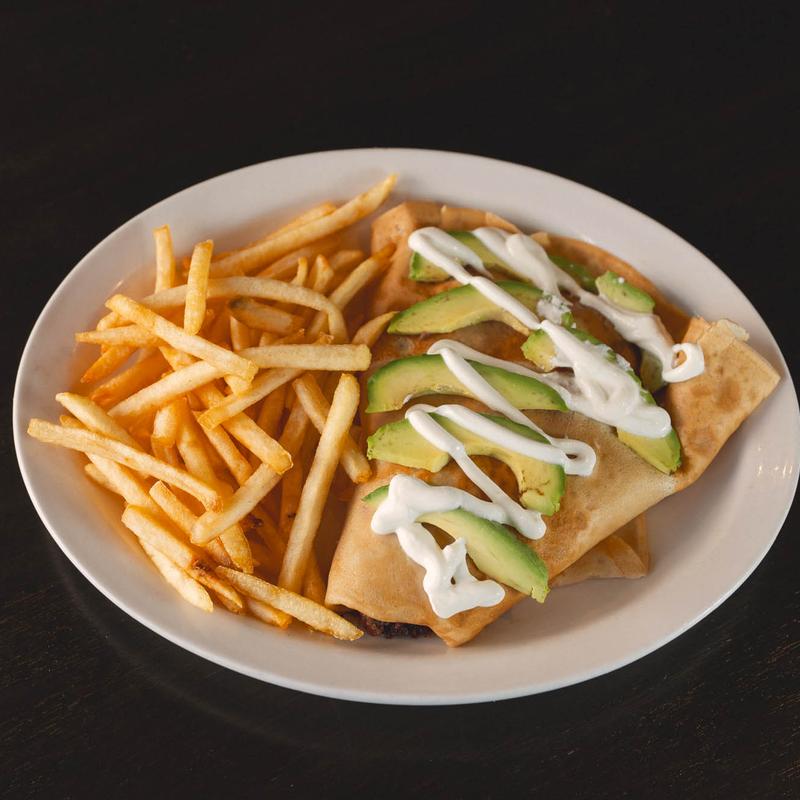 Crepes are made with white or gluten-free flour, served with a side salad or french fries | Steamed Broccoli +$1.49 | Fresh Fruit +$1.49 | Onion Rings +$1.49